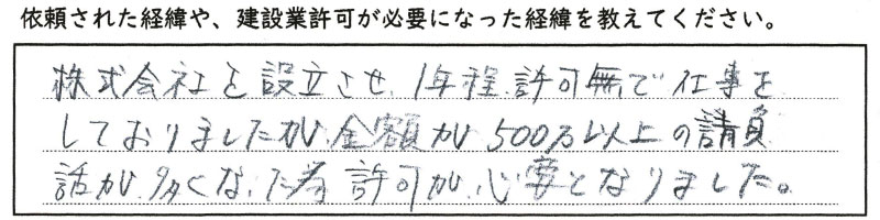 - 元請から建設業の許可を求められた・・・