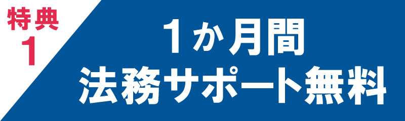 そこで、そういった開業初期の不安な時期にトラブルを避けるために、1か月間の法務サポートを特典として無料で行います。